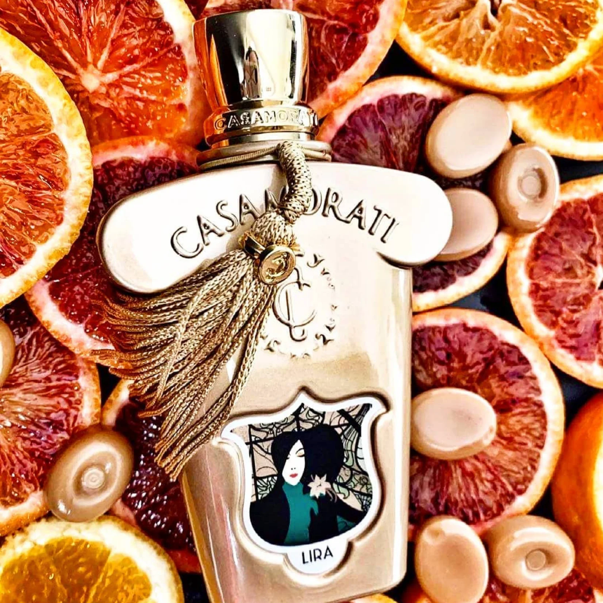 Lira opens with bright citrus, bergamot, and neroli, leading to a floral heart of jasmine, rose, and lily. The base reveals amber, vanilla, and soft woods, creating a warm, elegant, and harmonious composition.