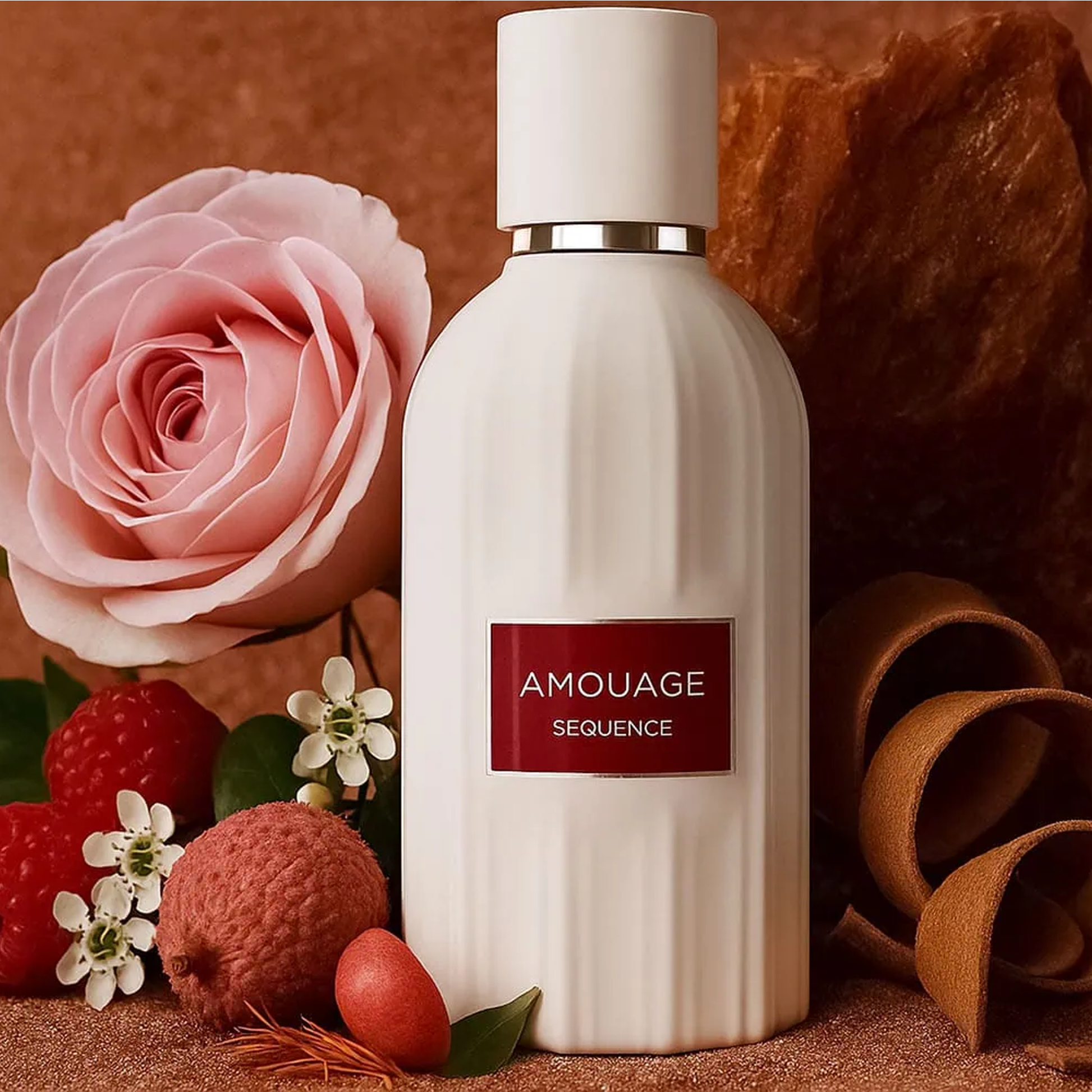 Sequence is a luxurious, modern composition that contrasts luminous fruit with deep leathered woods. It opens with a vibrant blend of lychee and raspberry touched by saffron, creating a juicy yet subtly spicy introduction. The heart reveals an elegant interplay of rose and osmanthus softened by tonka bean, adding floral richness and creamy sweetness. In the base, leather, oud, and ambery woods emerge, giving the fragrance depth, warmth, and a refined sensual darkness that unfolds slowly on the skin.